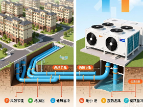 5、2025年甘肃武威市大众家园9万平米供热改造示范工程,成为中国第一个零碳供热小区,第一个全面应用复合热泵系统的项目。